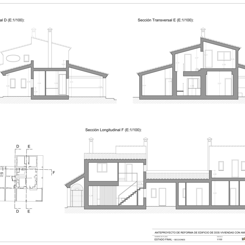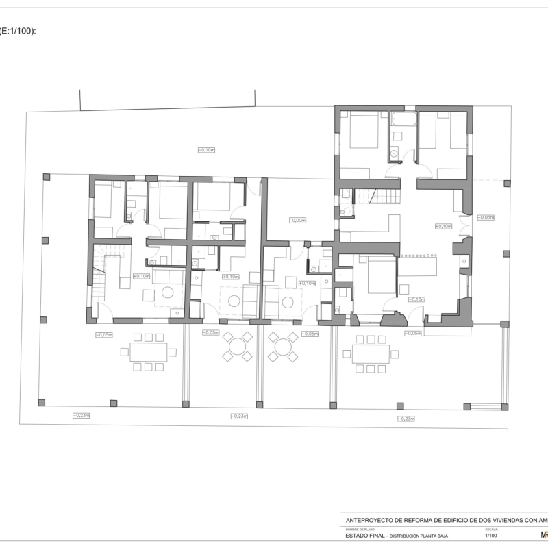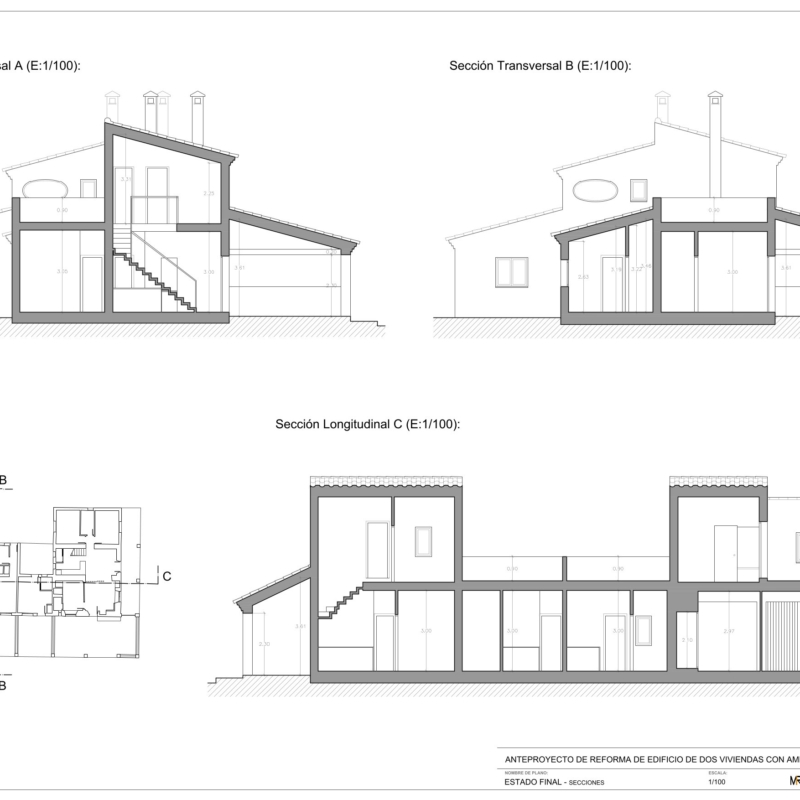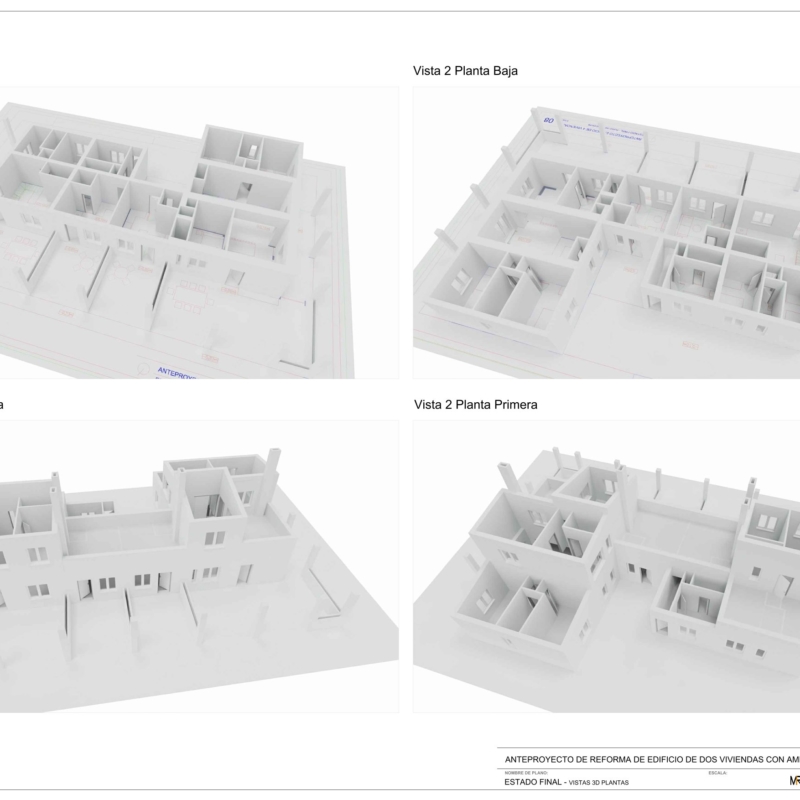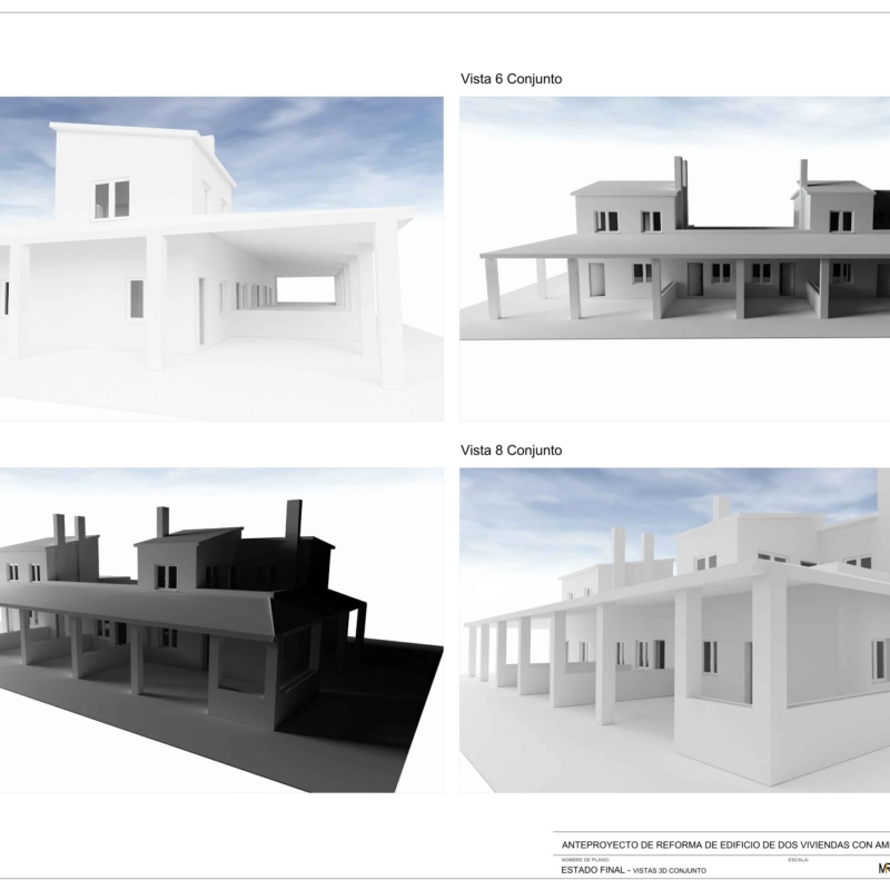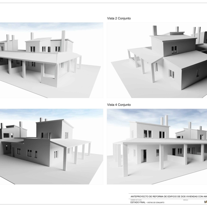 En massa&romero.com, desarrollamos el anteproyecto de reforma y ampliación de un edificio existente, con el objetivo principal de transformar dos viviendas en cuatro. Este proyecto gira en torno al espacio exterior, donde se proyectaron amplios porches para maximizar el uso del exterior, mientras que el interior se optimizó mediante un ejercicio de minimización del espacio, enfocándose en la funcionalidad y la eficiencia.