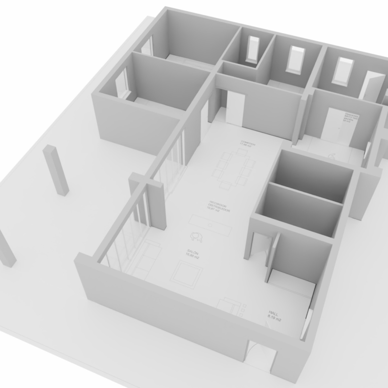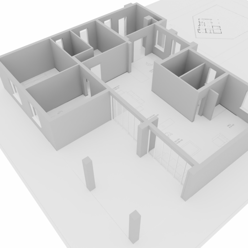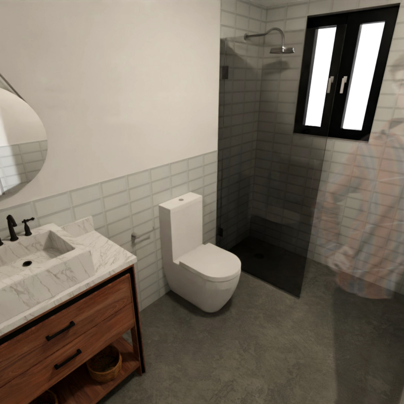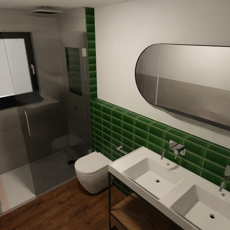 Con respecto a las instalaciones, climatizamos los espacios a base de suelo radiante frío/calor, apoyado con ventiladores de techo. También instalamos aerotermia para la obtención de energía renovable, junto con la preinstalación de placas fotovoltáicas.