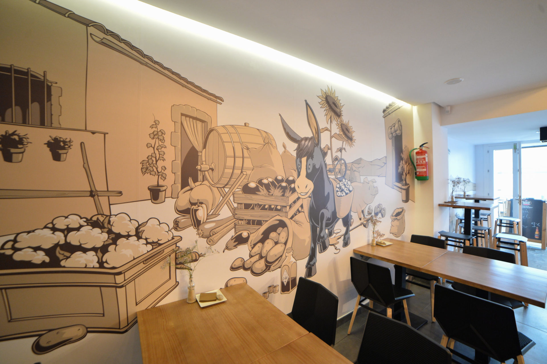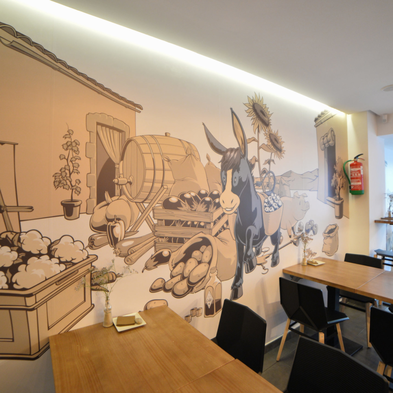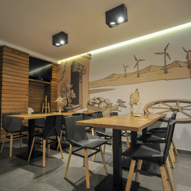 El nuevo diseño interior refleja la rica cultura local, integrando símbolos tradicionales como los molinos de viento y el ganado local, representados en un mural creado por el ilustrador gaditano Iván del Río. Además, se han utilizado materiales como el mimbre y la médula, que se mezclan con elementos modernos como las bombillas LED en las lámparas, para dar al espacio un carácter distintivo.