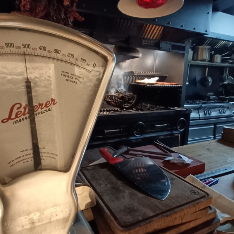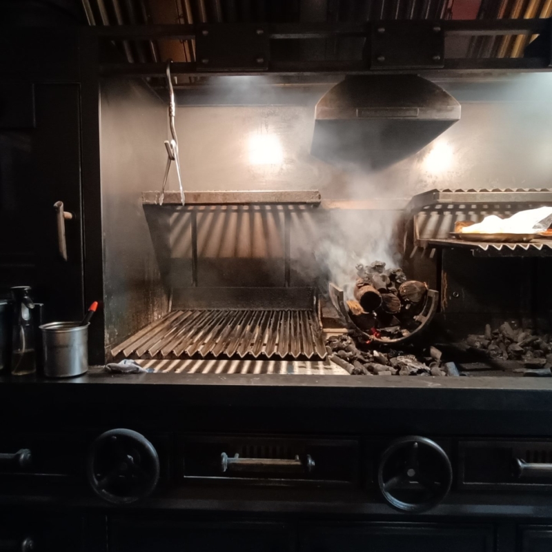 La propuesta se caracteriza por una cuidada combinación de materiales como la piedra, la madera y el metal, que se integran perfectamente para dar vida a este innovador local de brasa abierta.