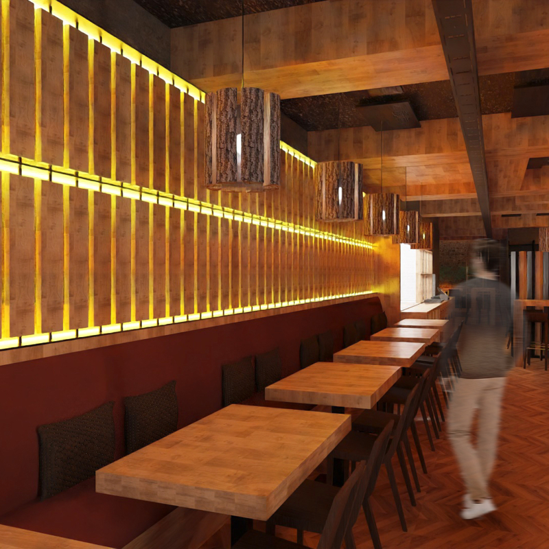 En massa&romero, llevamos a cabo la reforma integral de un local comercial para transformarlo en un nuevo local de hostelería donde la brasa y el culto al fuego son los protagonistas. El diseño del local se organiza en varios espacios consecutivos, cada uno con su propio carácter y ambiente, ofreciendo una experiencia diferenciada para los comensales.