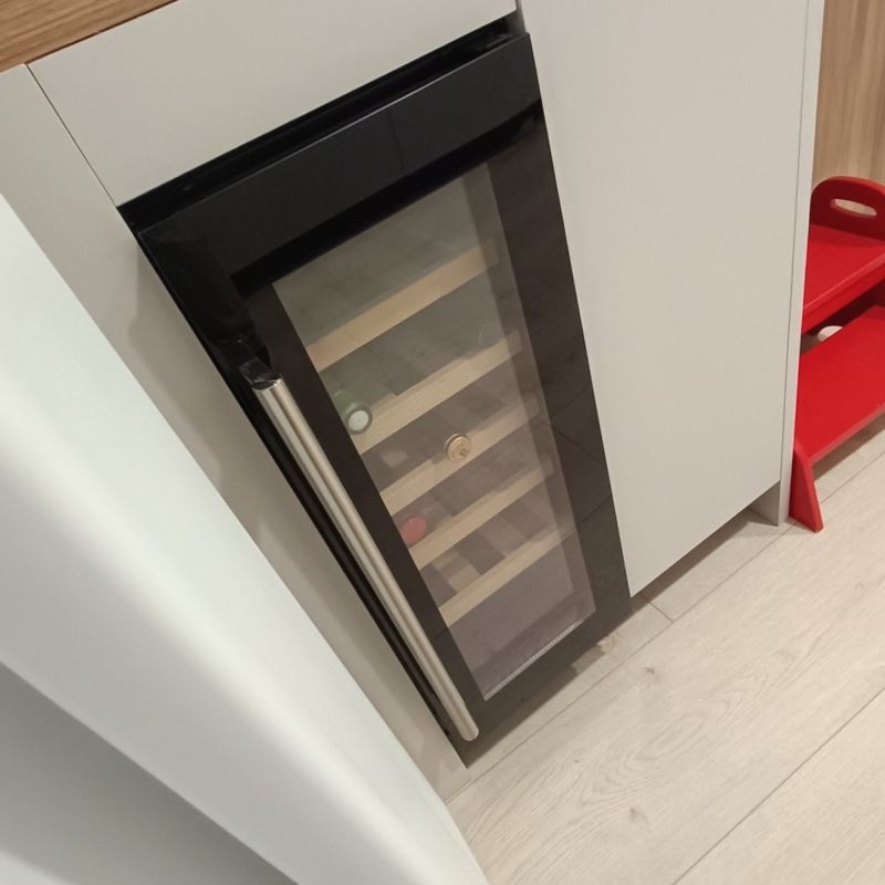 La cocina abierta se diseñó para estar conectada con el salón mediante una zona de barra, que integra almacenamiento adicional y una vinoteca, ofreciendo un espacio funcional y estéticamente agradable.