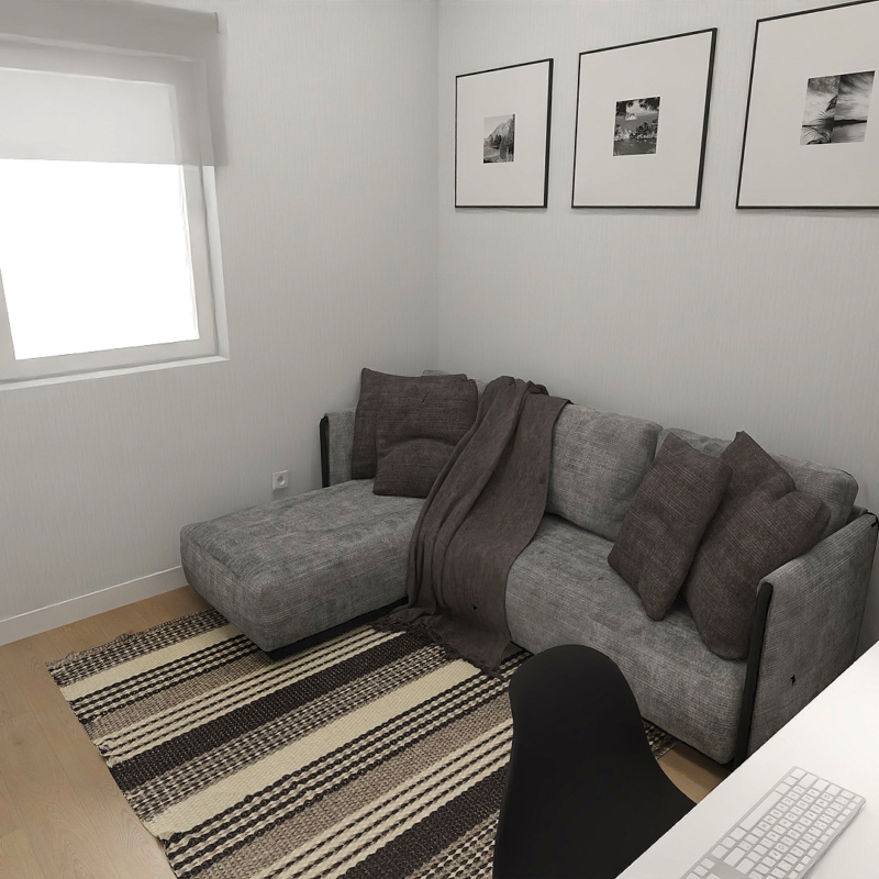 Nuestra clienta adquiere esta vivienda, ubicada en edificio de 1915, para su uso y disfrute. Se plantea un programa de necesidades donde se requiere una agradable zona de estar, un dormitorio con amplia zona de armario ropero y crear una zona de trabajo para poder teletrabajar.