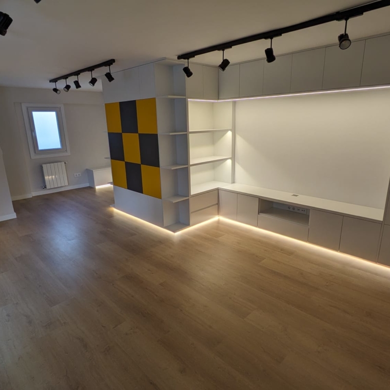Además, desarrollamos un mobiliario a medida que maximiza el uso de las estancias, integrando todas las funciones necesarias sin sacrificar el estilo ni la coherencia del diseño. Cada pieza de mobiliario fue diseñada específicamente para encajar en los espacios disponibles, lo que permite que las estancias ganen en funcionalidad y estética.